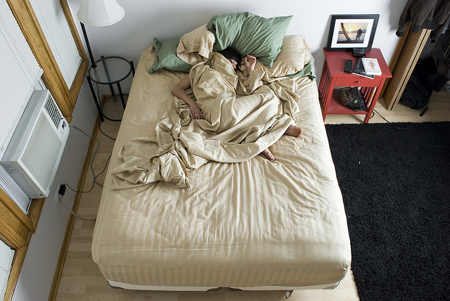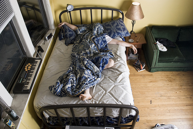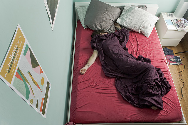 In Bed is a series of 23 photographs of people lying in their beds. I was interested in looking at the ordinary from an unordinary point of view, and also what can be learned from seeing someone's bed. Our bedrooms are private, intimate spaces. These photographs attempt to enter into that space.